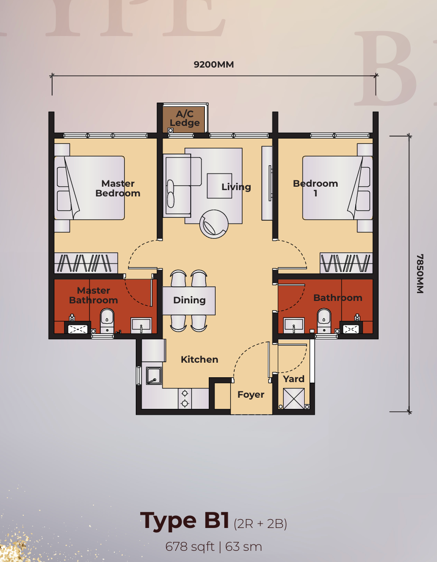 Type B1 – 678 sq.ft.